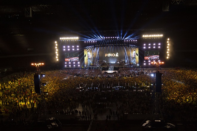 Italy for an audience of 85,000, and television audience of millions, that celebrated the life and songs of Italian singer Pino Daniele.