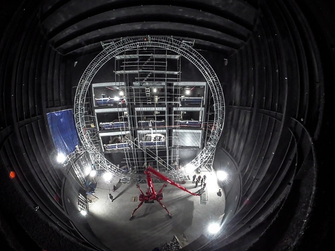 A massive, custom-designed, truss circle (22 metre diameter!) for a Fulldome projection system in South Korea. The custom circle, which serves to support lights and projection equipment, was constructed using specially designed, rectangular 850 × 990 mm Milos truss with 48 × 3 mm tubes. Each truss section includes ladder bars that enable staff to climb within the circle onsite to install the projection system equipment.